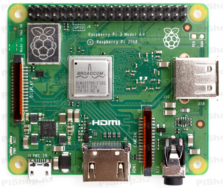 Raspberry Pi 3 Model A+ with built-in WiFi, 1.4GHz 64-bit Quad Core and 512MB Ram